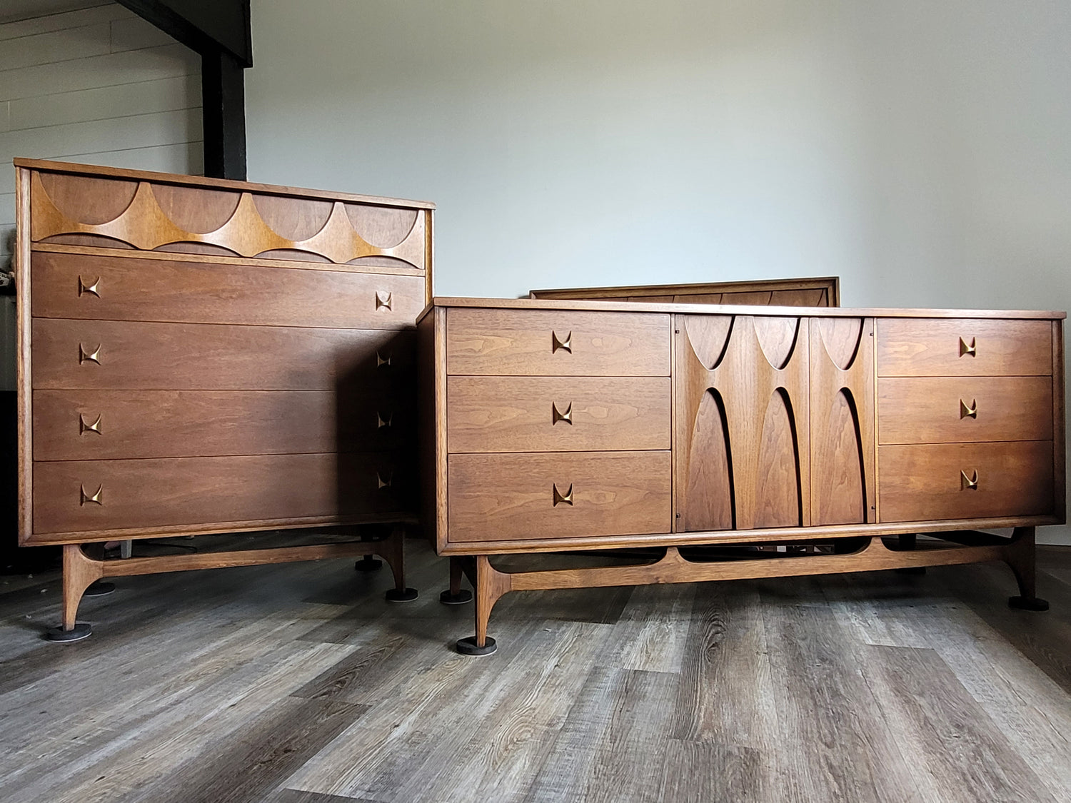 Sold outMCM Kroehler Dark Walnut Dresser Set