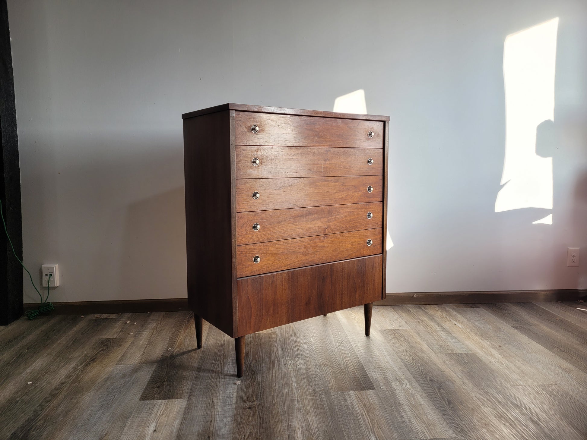 No lack of drawer space here! These things were made with stroage in mind. Both pieces feature double drawers that are super deep and perfect for storing a good amount of clothing or other items (see photos)! And we have to talk about those drawer pulls - they really make the set special. Super modern and clean, as well as eye-catching! The laminate tops are in overall good condition with one minor spot of character - there is an inprint of an iron on the lowboy! 🤣 It does not at all affect the function of the piece and you can only see it if you know where to look in the right light! To me this just adds a little uniqueness and character to a piece that has been loved already through one lifetime and is ready to be part of yours now in another. 🙂